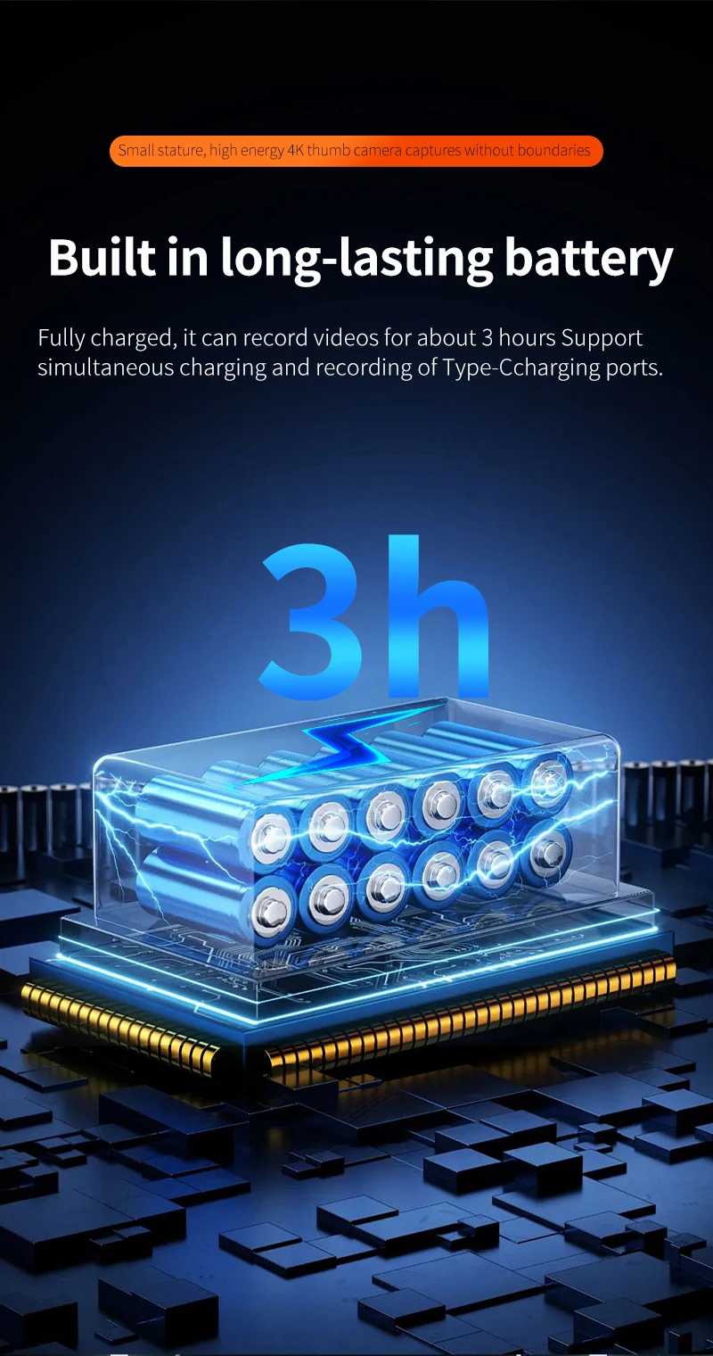 Completamente cargado, puede grabar vídeos durante aproximadamente 3 horas. Admite carga y grabación simultánea de puertos de carga tipo C.